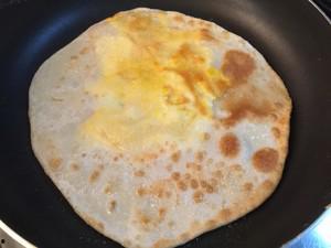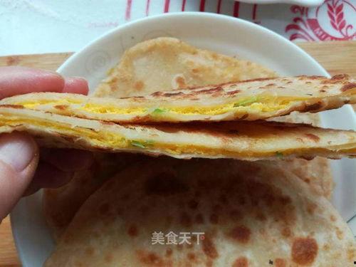 4. 煎饼:将饼皮卷起来,然后用手轻轻压扁,使其变成一个圆饼状。在平底锅中倒入适量的油,将饼放入锅中,中小火煎至两面金黄,饼皮变得酥脆即可。